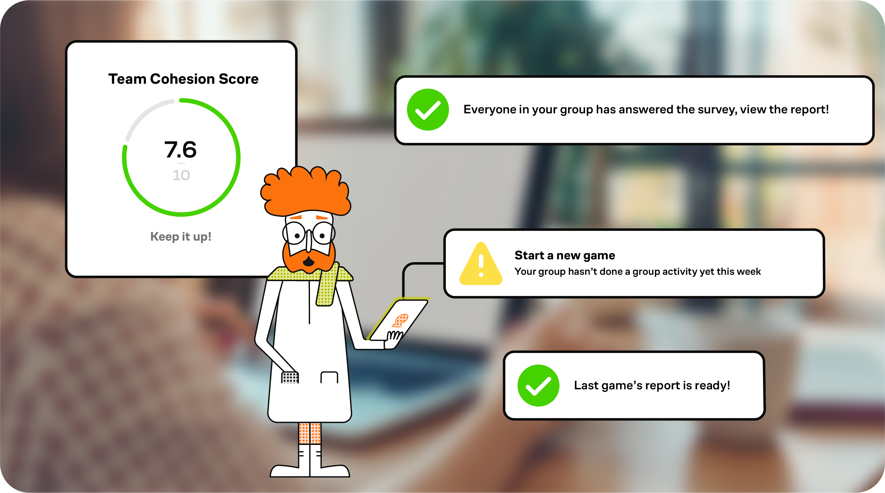 Create quick surveys for instant feedback, full surveys for detailed information, or specialized surveys for onboarding and DEIA.